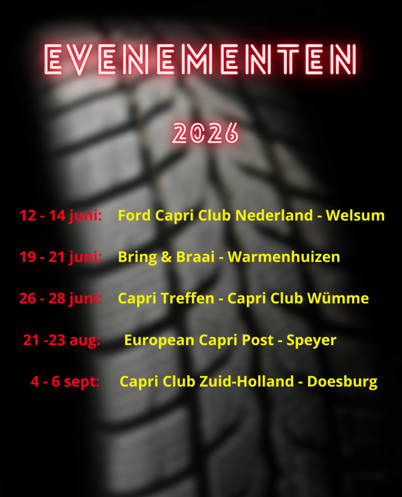 Het weekend van 5-6-7 september was het weer tijd voor de meeting van capri club zuid-holland. Dit jaar op een prachtige nieuwe locatie van de camping – aan het water en genieten van de mooie zonsondergang. Vrijdags waren er al veel capri´s aanwezig en een heerlijk buffet. ´s avonds werd er in de tent nog lekker na gekletst onder genot van een drankje. Zaterdag was het super mooi weer en druk met 96 ford capri’s. Aan het einde van de middag werd de barbeque aangezet, na de barbeque was de prijsuitreiking en werd er nog lang nagenoten in de clubtent.